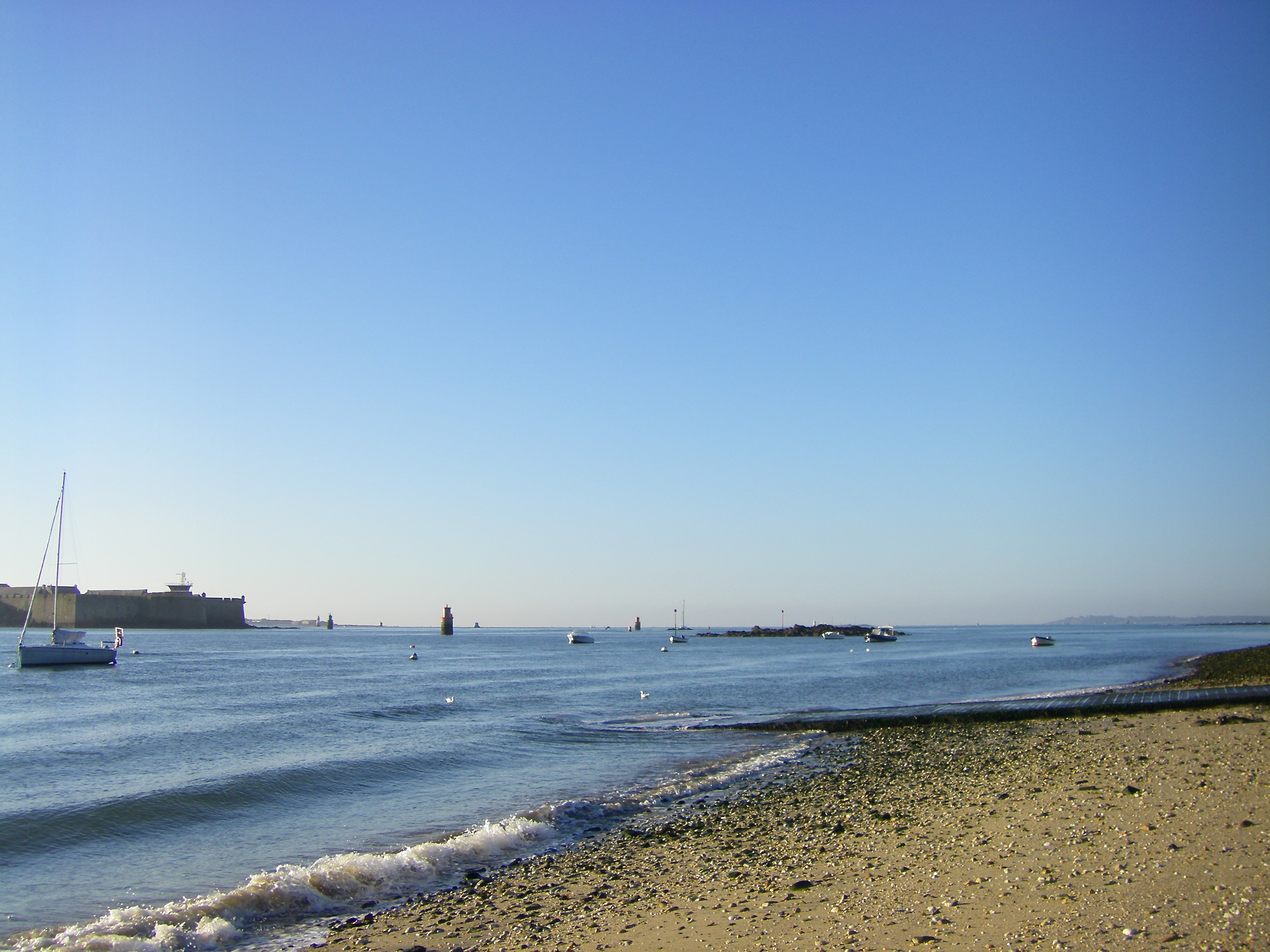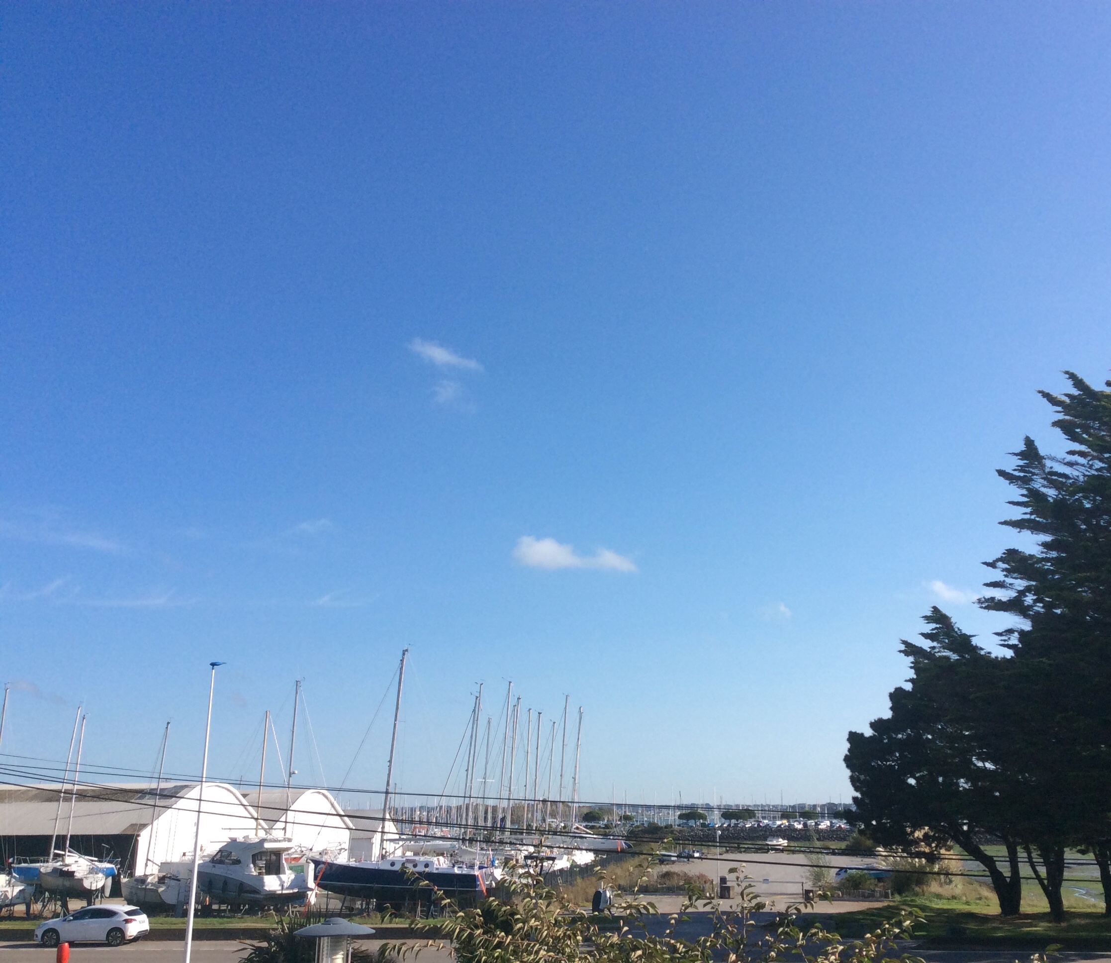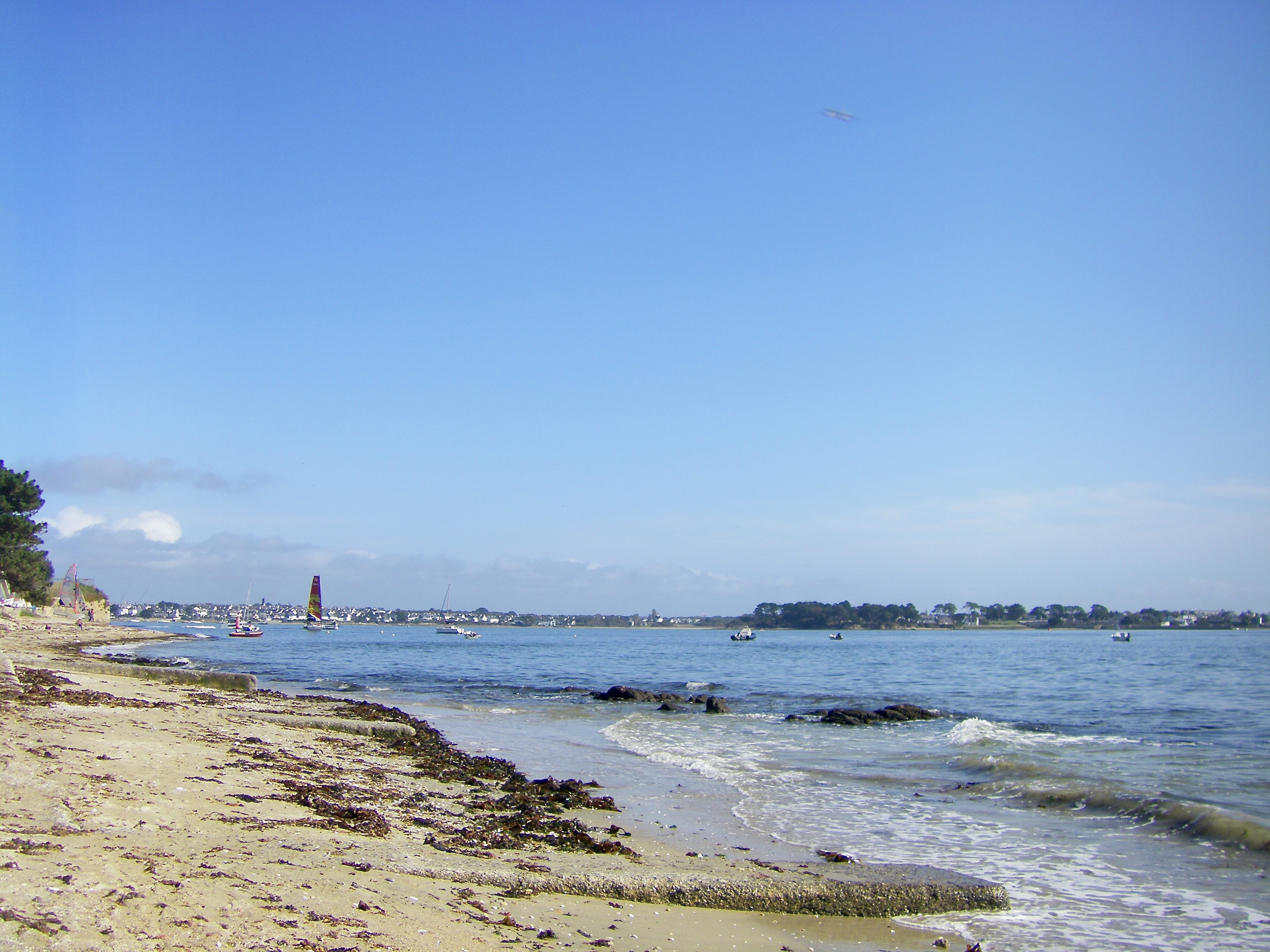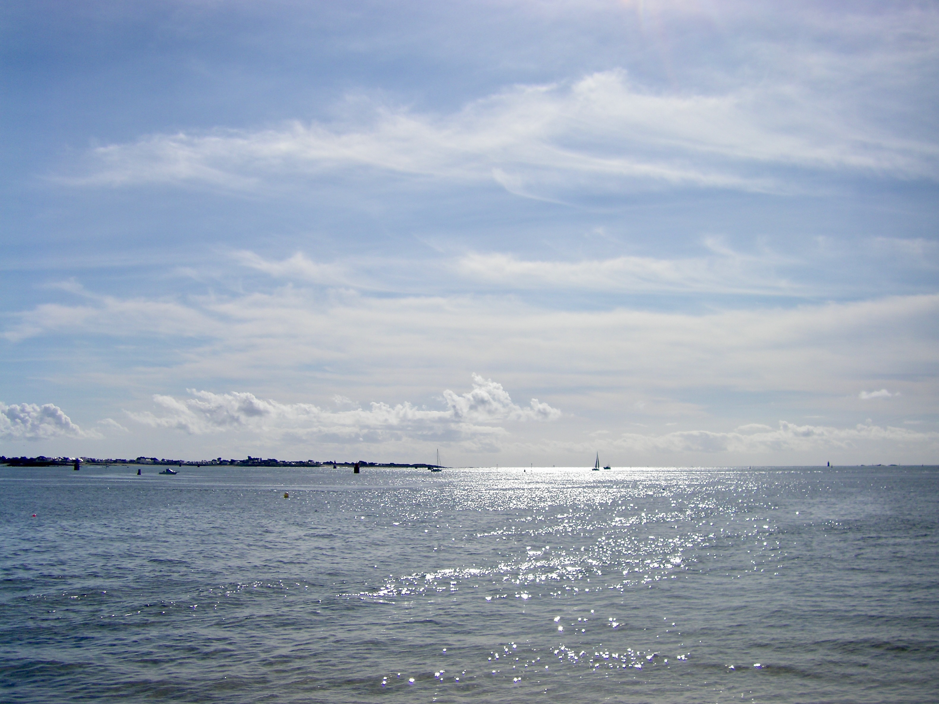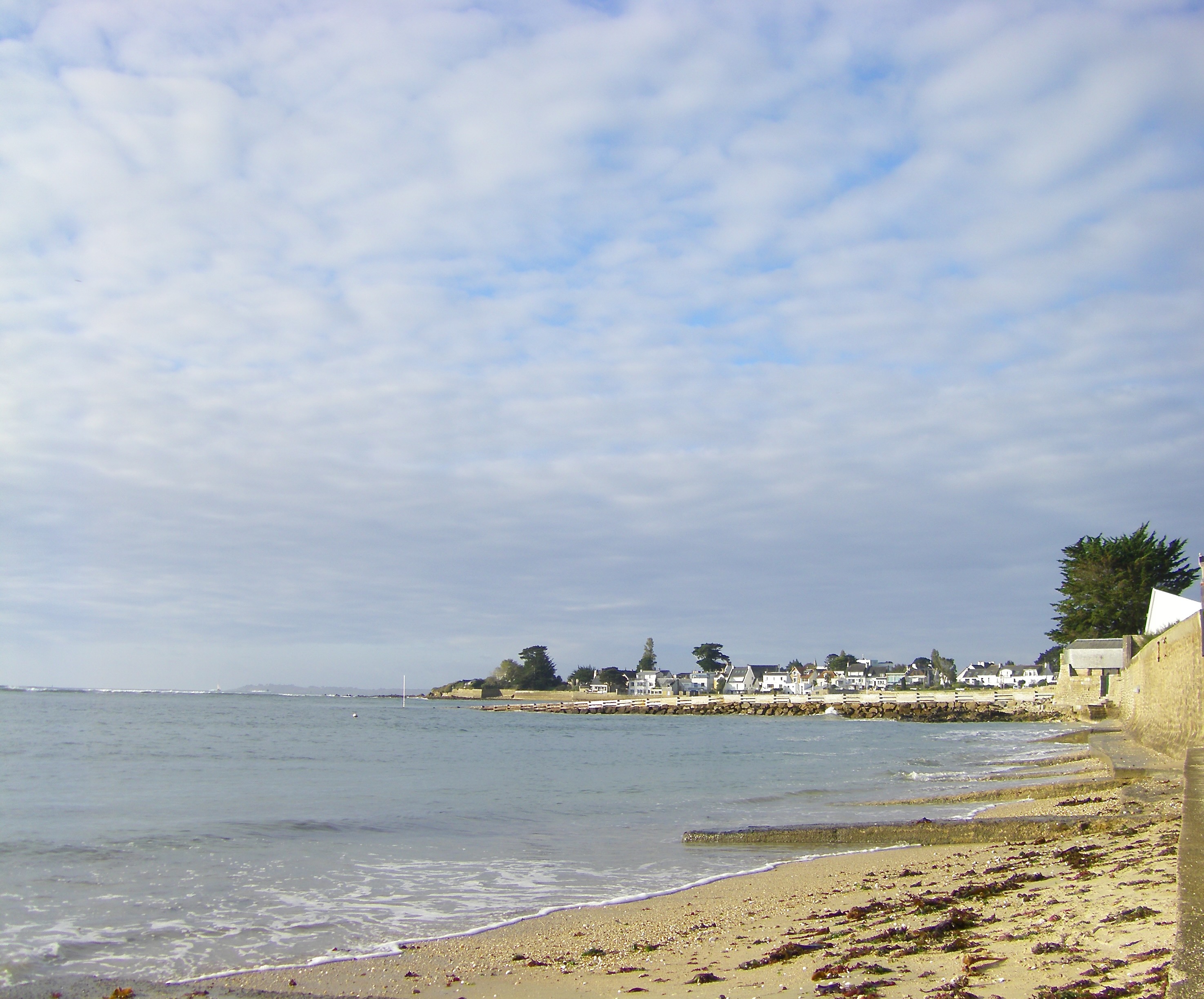 Très belle journée ensoleillée du matin au soir. Les nuages sur la photo sont totalement à l'Est de Larmor Plage. 18° un peu de vent d'ESt