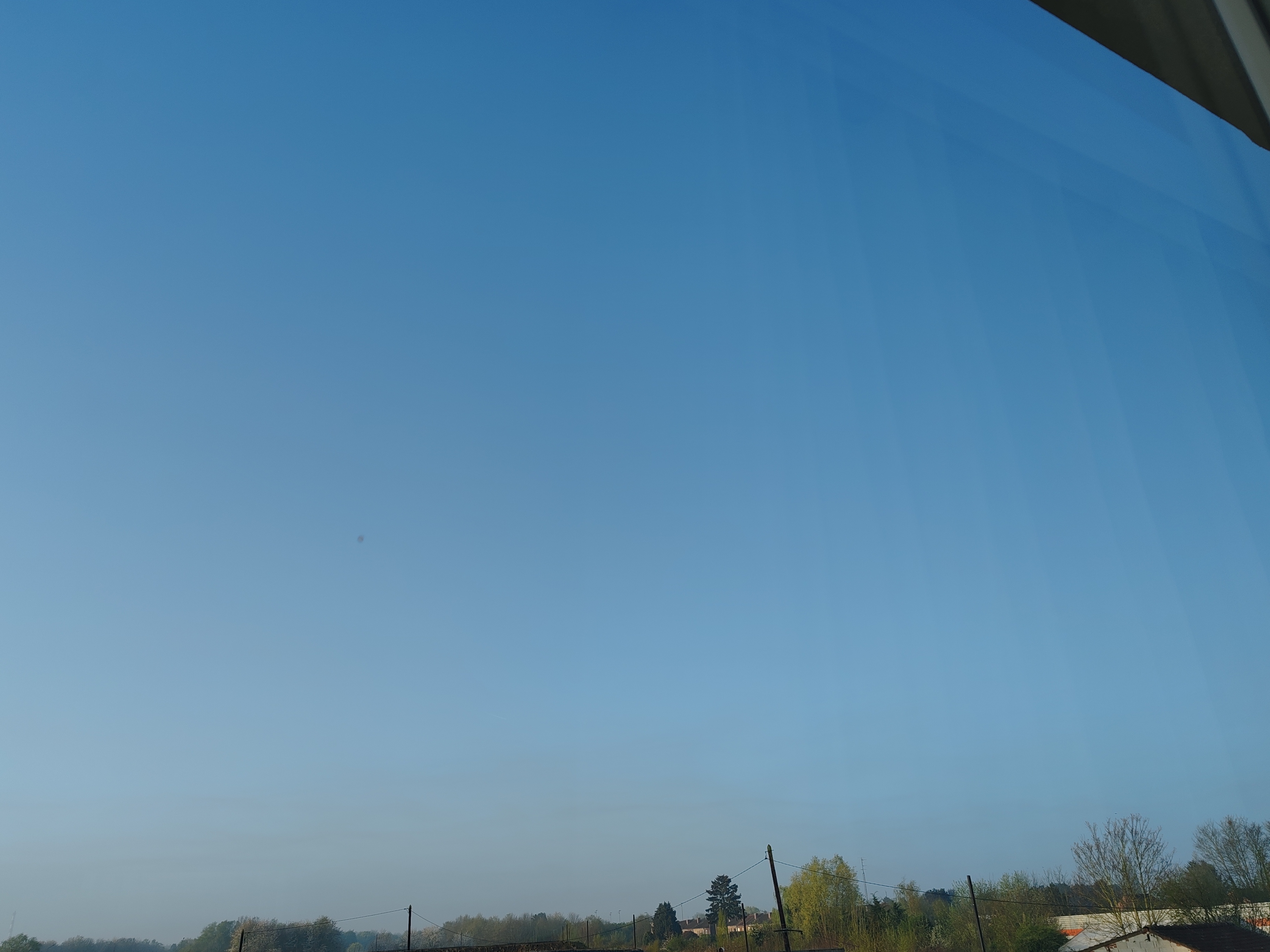 Ciel bleu, voilé avec fond un peu brumeux tn 3°6 maxi d'hier 17°9 actu 4°3 vent nul secteur NE. hr 94% ↗️ p 1024 hPa ➡️ prév. 🌞