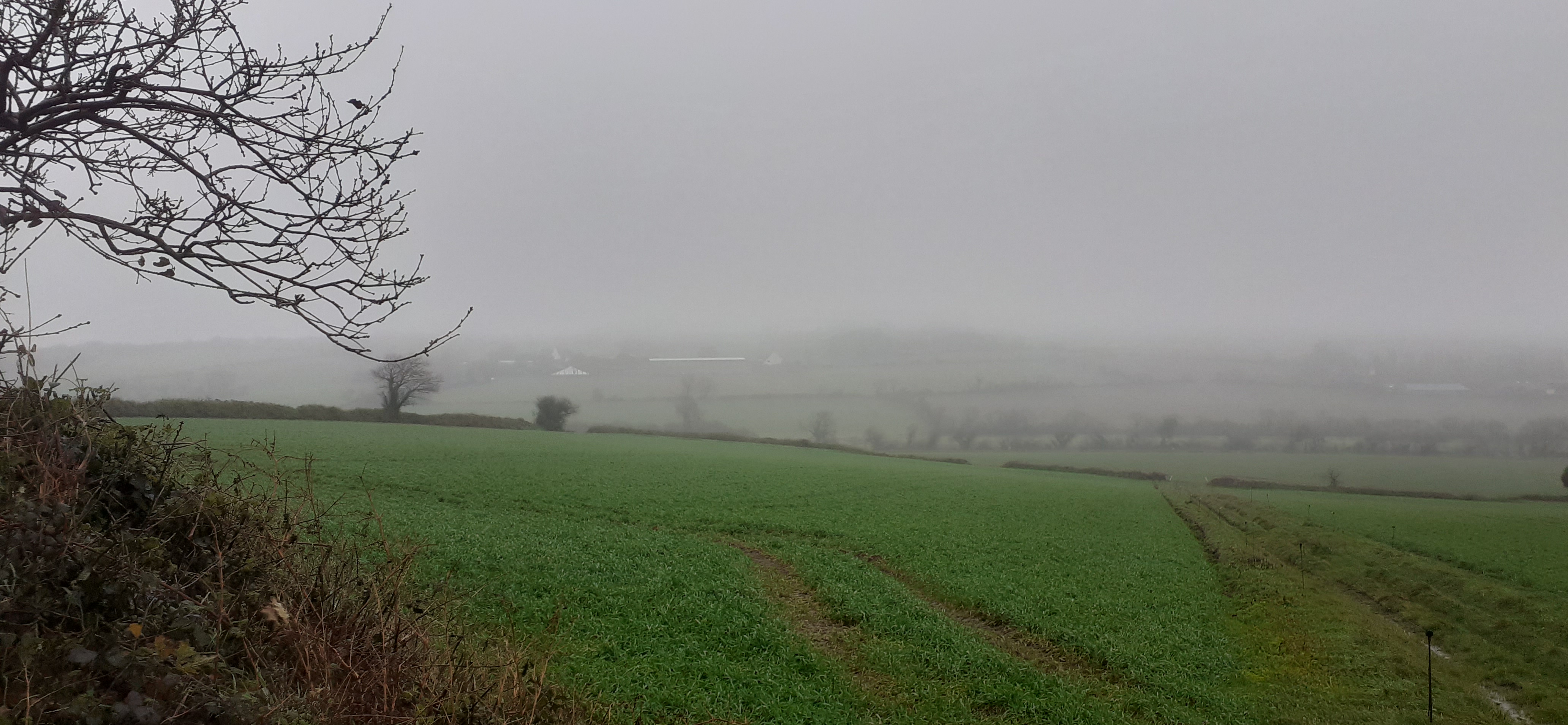 Pluie et brouillard, routes mouillées, 10°c bien doux et agréable.