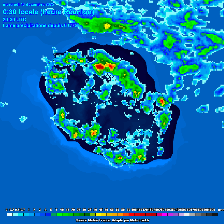 Radar de précipitations pluie et neige - Zoom Réunion